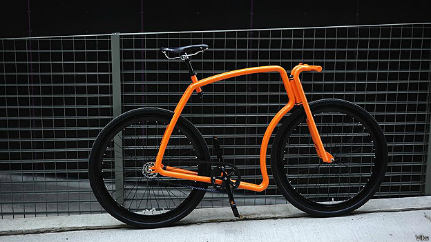 La bicicleta resultante, la Viks, es una abstracción desgarbada, formada únicamente por dos tubos de acero que se unen en el eje de dirección por debajo del manubrio.