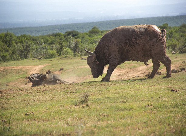 Un elefante bebé pelea con un búfalo (7)