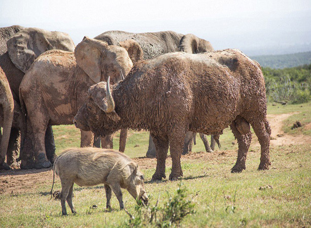 | Un elefante bebé pelea con un búfalo |