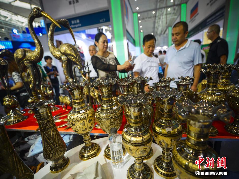 Objetos de bronce procedentes de Pakistán presentes en la 4ta exposición China-Eurasia. 2 de septiembre de 2014.