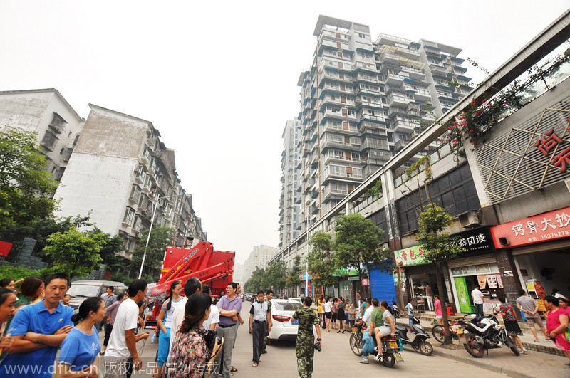 Los transeúntes se reúnen frente al edificio donde Kai está sentado en el descanso exterior de la ventana de su casa. El ni?o, por miedo a ser golpeado y para evitar el castigo, se refugió en el descanso exterior de la ventana.El apartamento está ubicado en el piso 11, en Yibin, Sichuan. [Foto: IC]