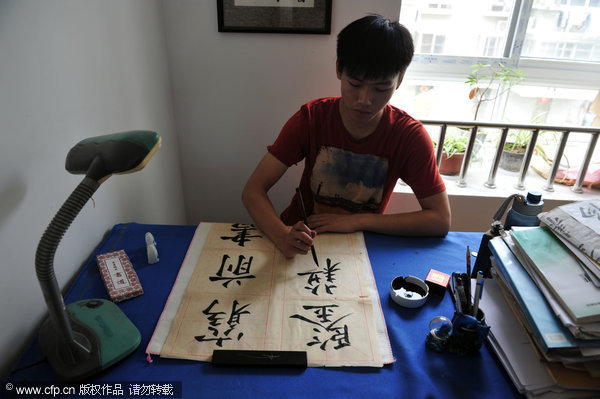 Liang, en su tiempo libre, disfruta de la caligrafía. [Foto: PPC]