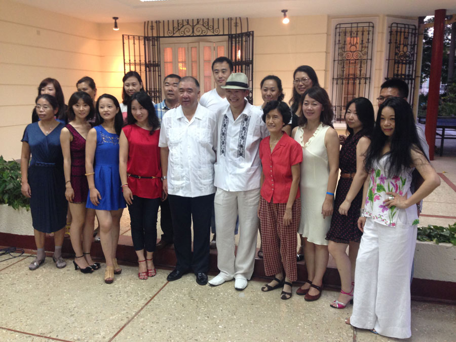 Con un grupo de estudiantes de visita en La Habana. Al centro, el embajador de China en Cuba, Sr. Zhang Tuo.