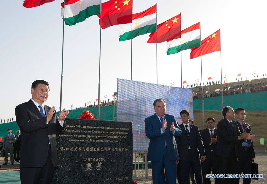 DUSHAMBE, 13 sep (Xinhua) -- El presidente de China, Xi Jinping, y su homólogo de Tayikistán, Emomali Rahmon, asistieron hoy a la ceremonia de inicio de construcción de la sección en Tayikistán de la Línea-D del Gasoducto China-Asia Central.