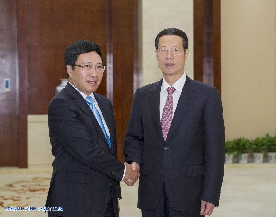 En una reunión con el viceprimer ministro y ministro de Relaciones Exteriores de Vietnam Pham Binh Minh, Zhang indicó que es de especial importancia para China y Vietnam reforzar la unidad y la cooperación, buscar el desarrollo común y fomentar el curso del socialismo.
