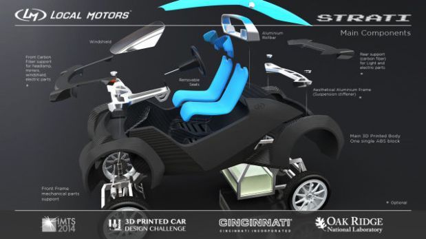 Arizona,17/09/2014(El Pueblo en Línea)-Local Motors ha creado el primer auto de tama?o real fabricado con una impresora 3D al cual han denominado Strati. Tras ser impreso las distintas partes del vehículo se ensamblaron en un total de 44 horas.