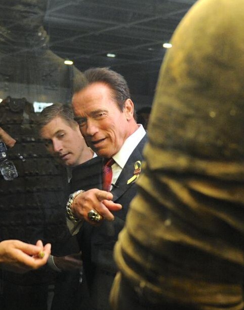Horario: Schwarzenegger pasó una noche en Huaqingchi en Xi'an. Después de su visita a los Guerreros de Terracota, Schwarzenegger escribió "Volveré" sus líneas clásicas en la película "Terminator" en el libro de visitas.