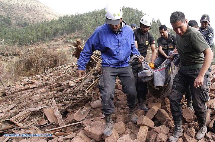 LIMA, 28 may (Xinhua) -- Ocho muertos, entre ellos cuatros menores de edad, y seis heridos es el balance preliminar de un seísmo de 5,1 grados en la escala de Richter, ocurrido la noche de ayer (sábado) en la sur andina región peruana de Cusco.