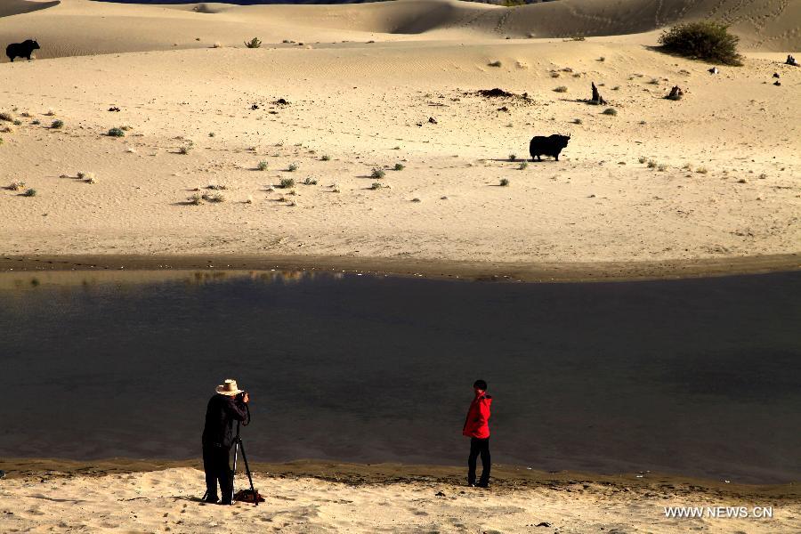 Foto del 25 de octubre de 2014 muestra a turistas tomando fotos del humedal en el condado de Gonggar, región autónoma del Tíbet.