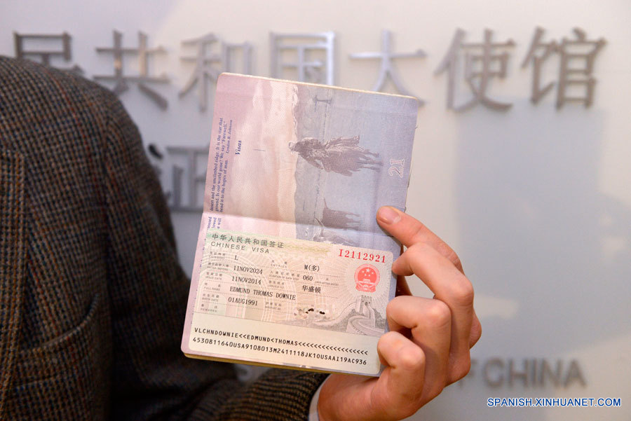 En la oficina de visas de la embajada china en Estados Unidos, el investigador Edmund Downie de 23 a?os de edad se convirtió en el primer estadounidense en recibir la visa por 10 a?os para ingresos múltiples.