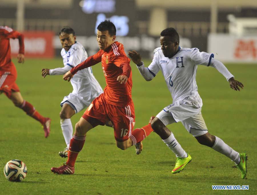 China se ubica actualmente en el lugar 88 a nivel mundial mientras que Honduras está en la posición 69. Diez jugadores hondure?os compitieron en la Copa Mundial 2014 en Brasil.