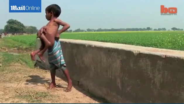 Después de un diagnóstico médico, los dos brazos y las dos piernas adicionales de este ni?o pertenecen a su hermano gemelo, que no está completamente desarrollado. Sin embargo, la familia del ni?o no acepta este argumento. Ellos piensan que el ni?o es una reencarnación de Brahma. A este dios hindú lo representan con ocho brazos.