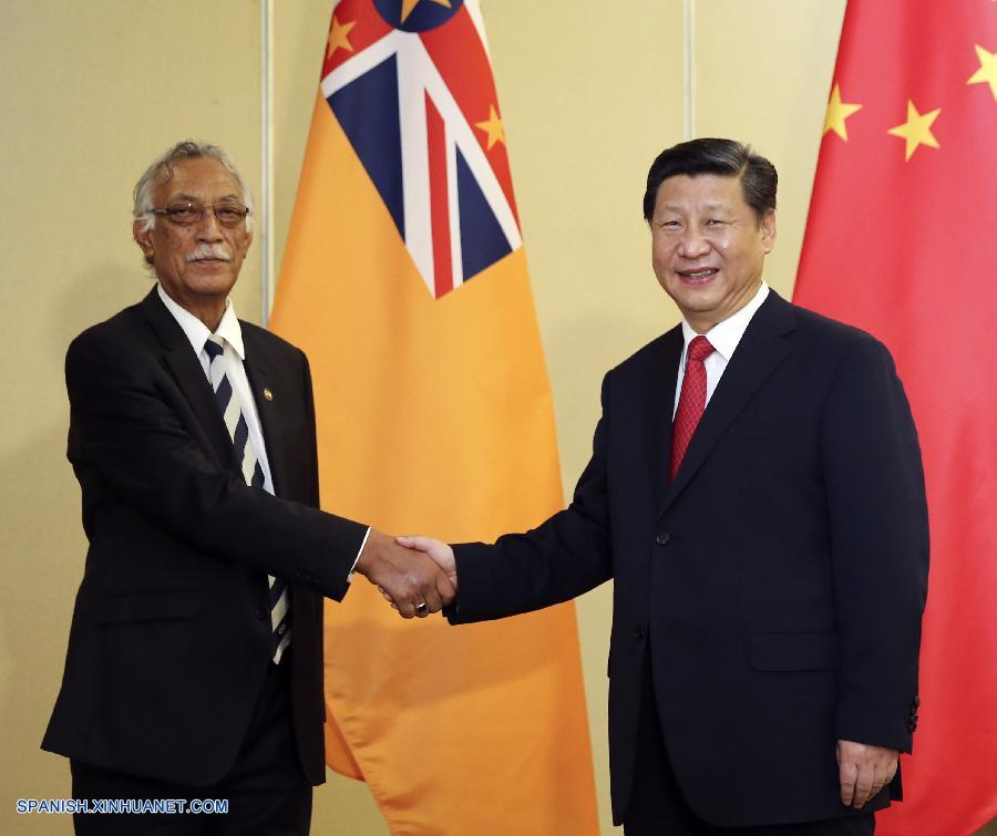 Al reunirse con Toke Talagi, primer ministro de Niue, Xi dijo que China y Niue han desarrollado sólidas relaciones, y que China desea expandir sus intercambios amistosos con Niue, fomentar la cooperación en pesca, construcción de infraestructura y servicios médicos y de salud, para ayudar a acelerar el desarrollo de Niue.