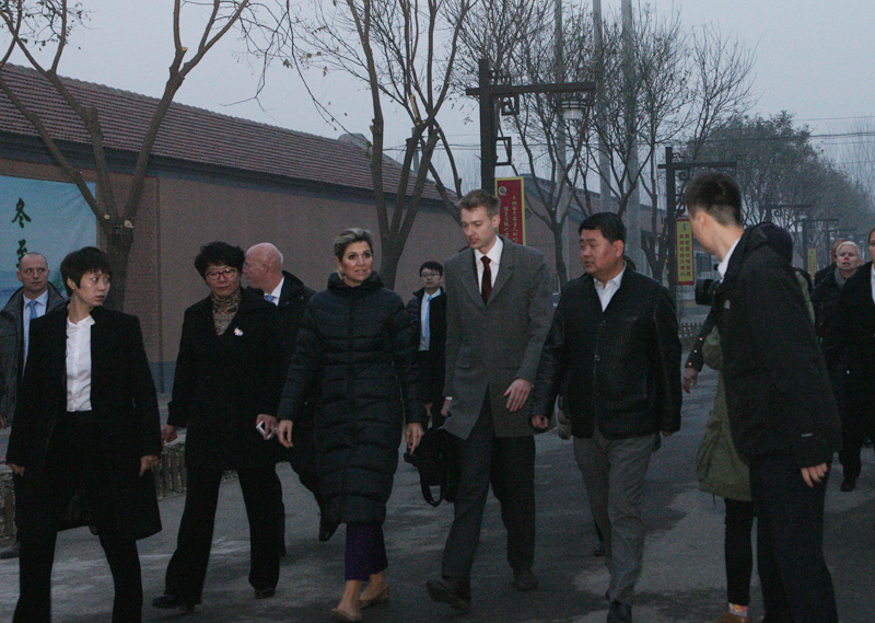 Pekín,28/11/2014(El Pueblo en Línea)-La reina Máxima de Holanda (centro) visita el restaurante de tallarines de la aldeana Wang Yan durante un viaje a una zona financiera en la aldea de Dongxingtun, a las afueras de Pekín, el 26 de noviembre de 2014. [Foto/CFP]