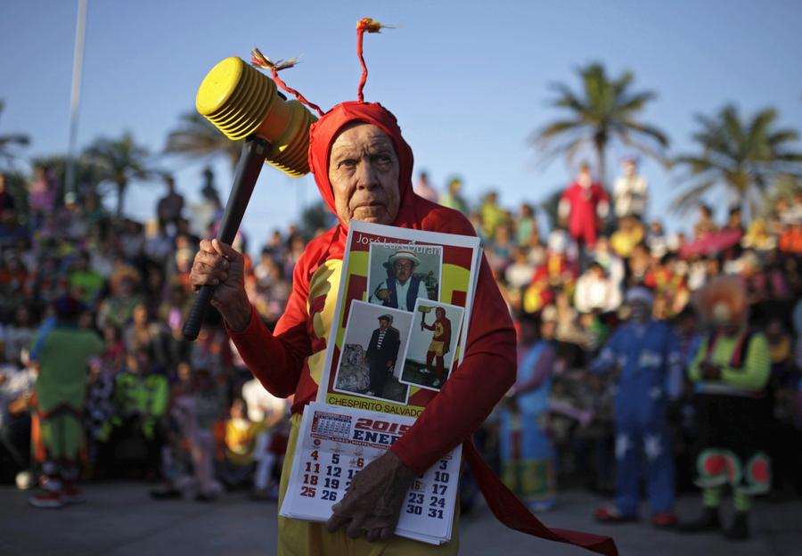 Un hombre vestido del personaje de televisión mexicano “El Chapulín Colorado” durante las celebraciones del Día Nacional del Payaso en la Plaza de Beethoven, en San Salvador, el 3 de diciembre de 2014. El congreso salvadore?o declaró el segundo miércoles de diciembre como el Día Nacional del Payaso en honor a todos los payasos salvadore?os y sus esfuerzos crear diversión en el país, según medios locales.