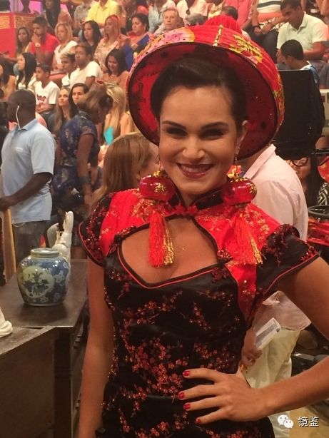 Durante la grabación del programa, chica brasile?a va vestida en cheongsam.