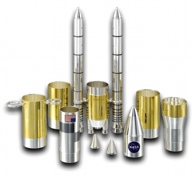 Set de vino de plata pura: el set de vino de plata pura está hecho por el joyero de Londrés Theo Fennell. Basado en la apariencia de transportador espacial Ares V de la NASA, se han fabricado 6 copas con forma de cohete, una botellita de sal y un plato para poner limón.