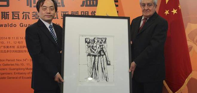 La exposición itinerante de Oswaldo Guayasamín se inauguró en el Museo Nacional de China (Pekín) y posteriormente recorrió Shanghai, Cantón y Nanjing.