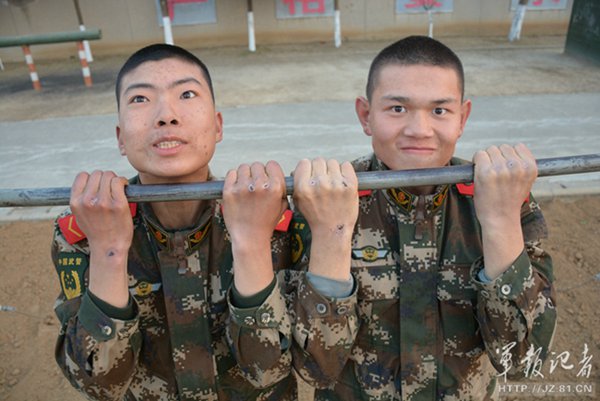 Las cicatrices son visibles en las manos de los soldados.