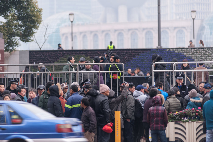 Cientos de personas participan en la ceremonia de recuerdo a las víctimas de la estampida que se produjo justo hace una semana en el Bund de Shanghai, el 31 de diciembre, en la que murieron 36 personas. Imagen del 6 de enero. [Foto/CFP]