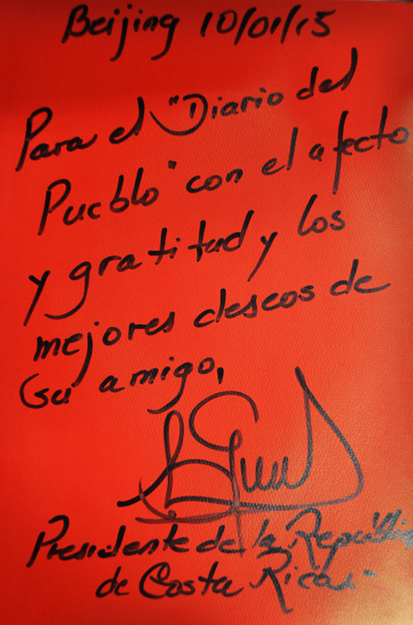 Le decía al primer ministro Li el otro día que me satisfacía mucho ver una voluntad casi idéntica entre el gobierno del presidente Xi Jinping y el mío. Cuando estuvimos en campa?a hace un a?o, y cumpliré un a?o de gobierno en el mes de mayo de este 2015, yo prometí tres cosas: desarrollar la economía, mejorar la distribución de la riqueza y luchar contra la pobreza y la desigualdad, y rescatar la transparencia, la lucha contra la corrupción en el corazón de la política, la ética en el corazón de la política, y veo que estos tres objetivos, que se reflejan en el Plan Nacional de Desarrollo de Costa Rica, son muy parecidos a los que tiene el gobierno chino. Evidentemente son escalas distintas. Costa Rica es un peque?o país, con una población de 4,5 millones de habitantes que cabe en un barrio peque?o de Beijing, pero tenemos ese mismo objetivo y por lo tanto, encuentro que hay una gran simetría en la perspectiva de futuro de ambos países.