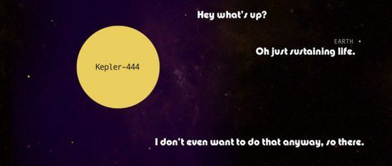 EEUU.,29/01/2015(El Pueblo en Línea)-Grupo de astrónomos descubrió estrella, a la cual bautizaron como "Kepler-444", y es 25% más peque?a que el Sol y bastante más fría, pero que es mas vieja, tiene 11.2 millones de a?os; casi triplica la edad del sol, según publicó la revista Astrophysical Journal.