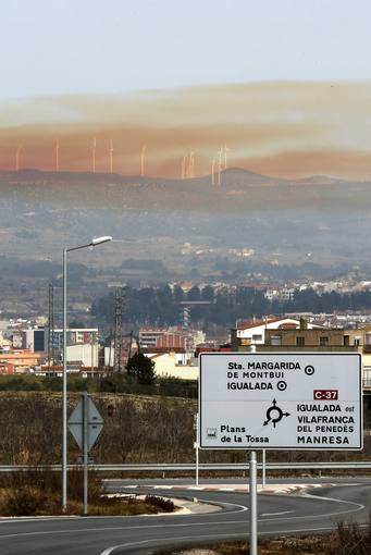 Barcelona,13/02/2015(El Pueblo en Línea)-La explosión e incendio en la empresa química Simar, de Igualada, Barcelona, durante el mediodía de la hora de Espa?a provocó una nube de gases con efecto tóxico e irritante. Unas 60.000 personas fueron confinadas en sus casas en los municipios de ódena, Jorba y Vilanova del Camí, aparte de Igualada.