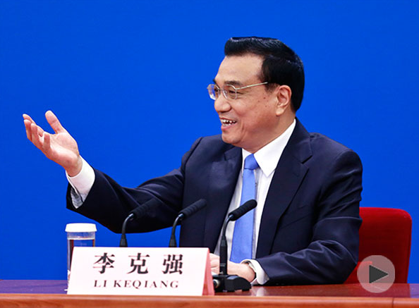 El primer ministro chino, Li Keqiang, interviene en la conferencia de prensa ofrecida después de la sesión de clausura de la Asamblea Nacional Popular (APN), el 15 de marzo de 2015. [Fotografía: Feng Yongbin]
