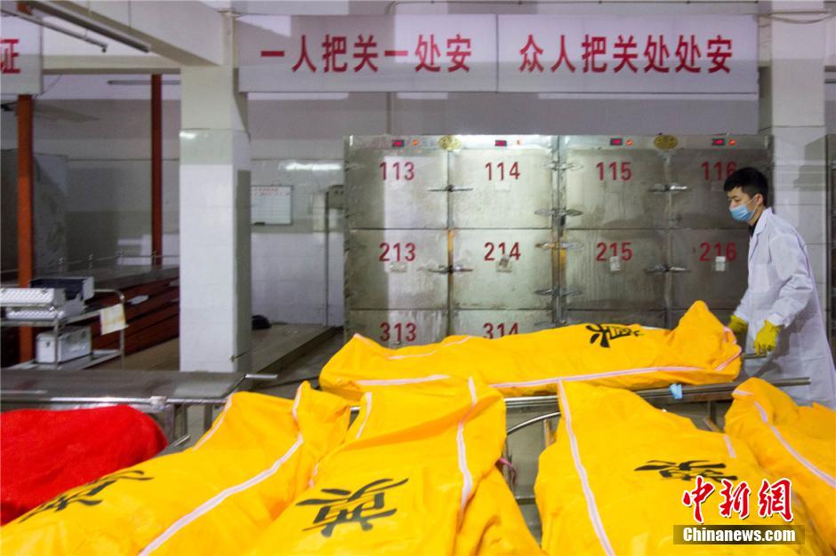 Un artista del maquillaje embellece a un difunto. (Foto: Huang Weiming)