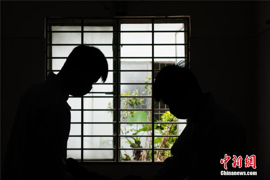 Dos artistas del maquillaje embellecen a un difunto. (Foto: Huang Weiming)