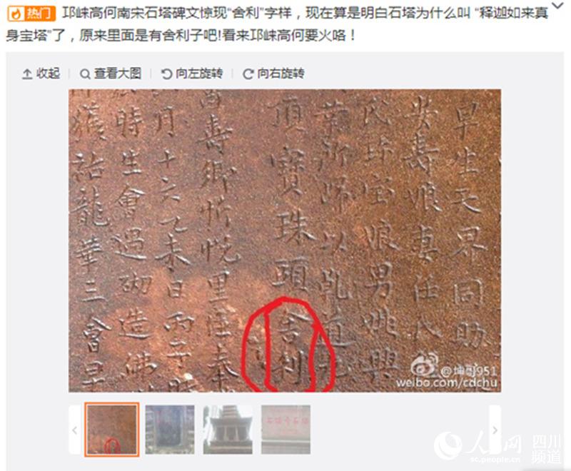 La laja de piedra, que fue publicada en Weibo. Los caracteres rojos significan "reliquias del Buda".
