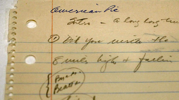 | Subastan el manuscrito de American Pie por 1,2 millones de dólares |