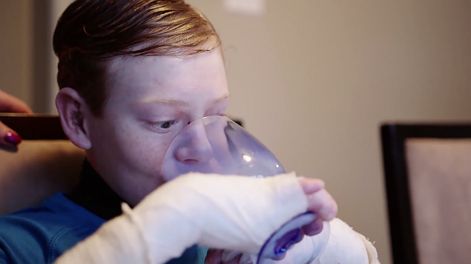 El documental muestra el que considera el peque?o, como "el momento más doloroso del día", se trata del ba?o diario, cuando tiene que despojarse de todas sus vendas para reponerlas por unas nuevas y así evitar infecciones.