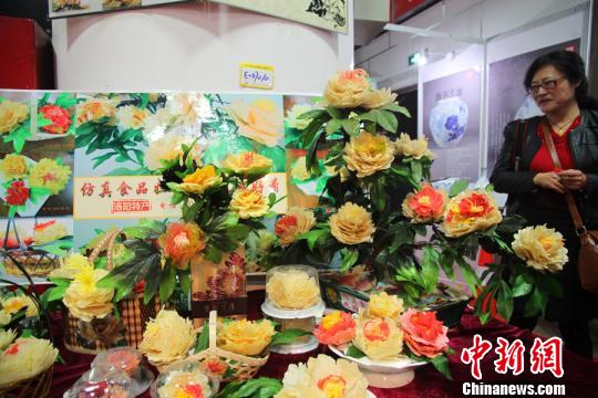 Las peonías hechas con tortas de harina de una exposición llamaron la atención de muchos curiosos en Luoyang, provincia de Henan, un lugar donde abundan las peonías en abril, informó el 19 de abril la web chinanews.com.