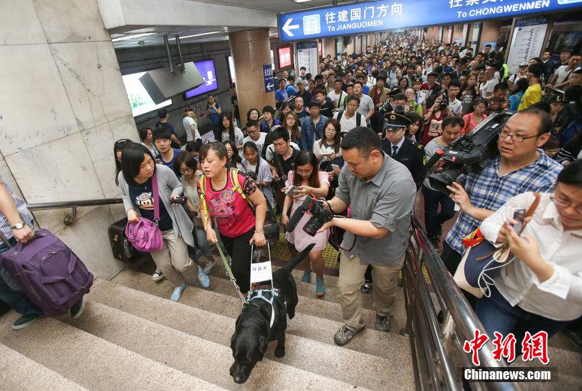 Con la ayuda de un empleado del metro, Chen y su perro entraron en un vagón dise?ado para pasajeros discapacitados y posteriormente hizo trasbordo a la línea 2 para llegar a la estación de tren de Pekín.