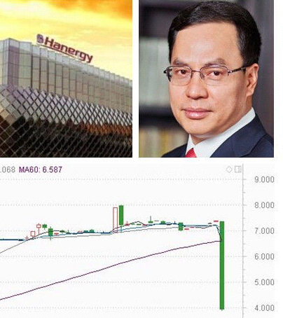 Ese día, perdió casi la mitad de su fortuna en la Bolsa de Hong Kong. Lo que ocurrió fue que Hanergy había conseguido una capitalización de 40.000 millones de dólares, pero en los últimos treinta minutos de la sesión del miércoles las acciones de la compa?ía cayeron un 40 por ciento y la Bolsa se vio obligada a suspenderla.