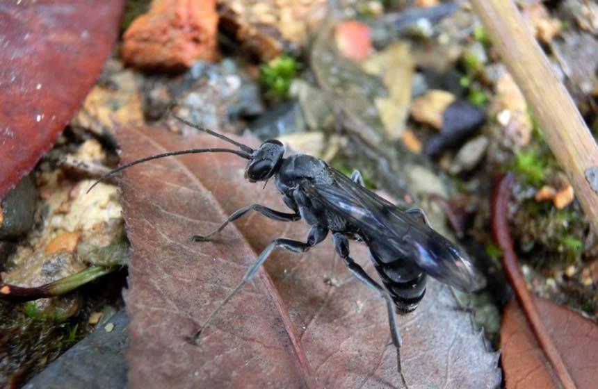 6 Deuteragenia ossarium: Esta avispa, localizada en la reserva natural de Gutinashan (China), mide 15 milímetros de longitud y construye nidos en tallos huecos que separa en varias secciones con paredes, donde pone los huevos. La última de las celdas del nido la llena con hormigas muertas que crean una barrera química para prevenir la presencia de depredadores.