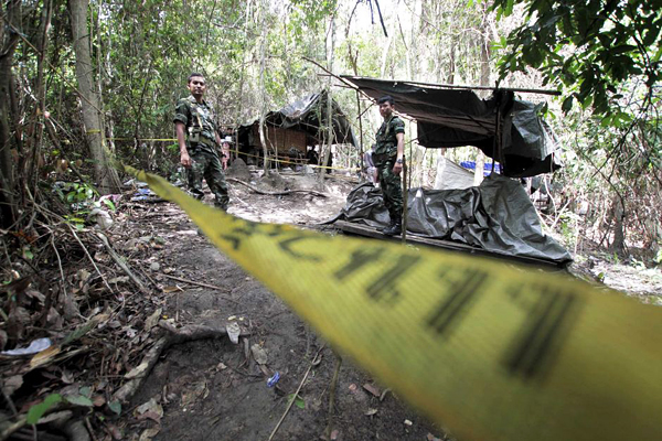 El inspector general de la Policía, Khalid bin Abu Bakar, se encuentra en el lugar para dirigir las investigaciones de los campos, utilizados por los traficantes para recluir a los inmigrantes hasta que sus familias pagaban un rescate. Los campos fueron abandonados antes de ser descubiertos por la Policía.