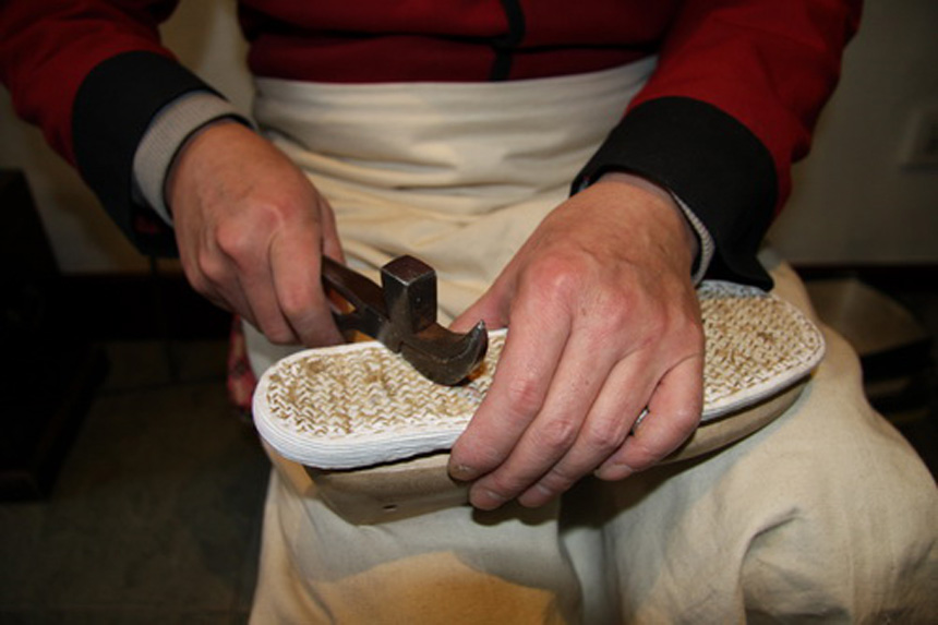 Un fabricante revisa la suela un zapato.