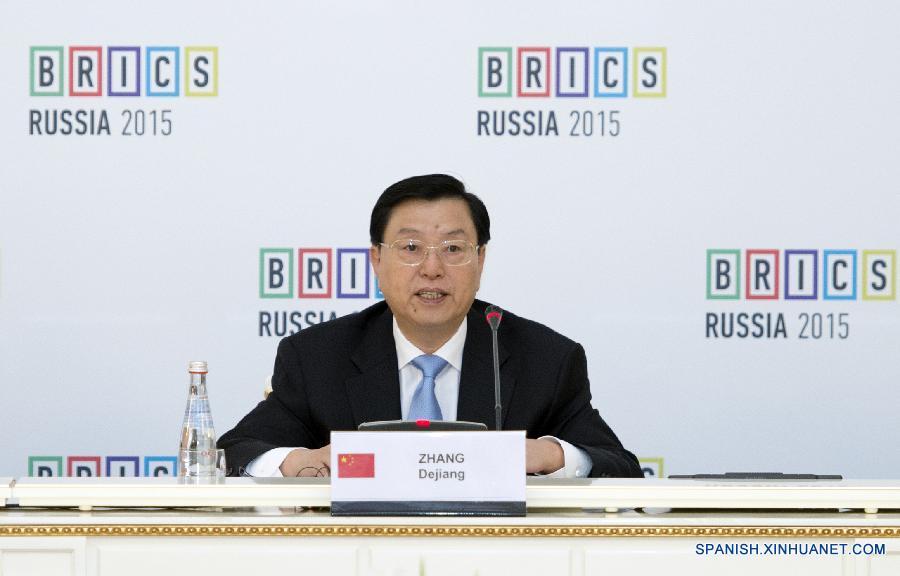 MOSCU, 8 jun (Xinhua) -- El máximo legislador de China, Zhang Dejiang, exhortó hoy a las cinco principales economías emergentes del mundo a impulsar la cooperación y a desempe?ar un papel constructivo en cuanto a abordar los problemas globales y a promover la paz y el desarrollo mundiales.