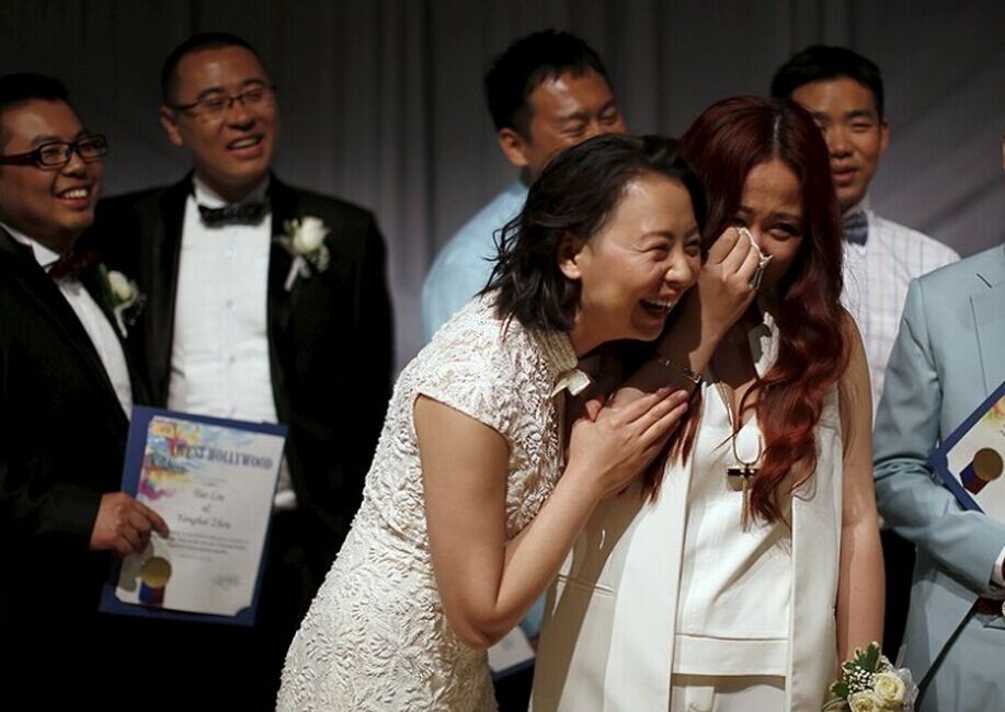 Lindsey Horvath, alcalde de West Hollywood, presidió la ceremonia nupcial, efectuada en una biblioteca de la ciudad. Estaban presentes las siete parejas que lograron obtener visa para visitar Estados Unidos. El concurso también fue patrocinado por Azulado, una red social muy popular entre los homosexuales de China.