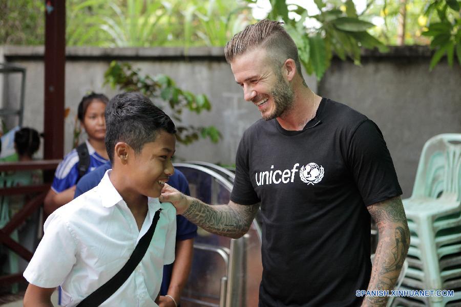 Beckham llegó a Camboya el sábado para una visita de tres días.