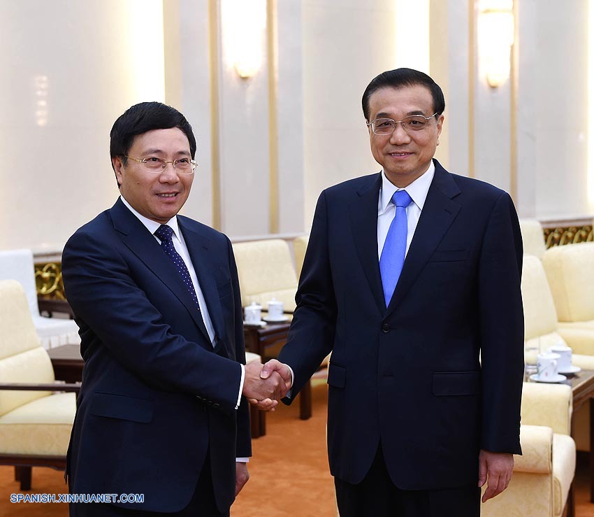 BEIJING, 18 jun (Xinhua) -- El primer ministro de China, Li Keqiang, se reunió hoy en Beijing con el viceprimer ministro y ministro de Relaciones Exteriores de Vietnam, Pham Binh Minh, y pidió unidad y una cooperación más estrecha entre las dos naciones.