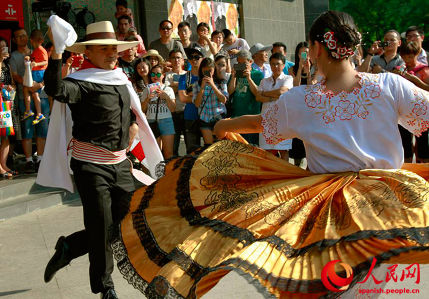 Desde la ma?ana, la plaza del Instituto Cervantes de Pekín fue escenario de magníficas danzas de México, Perú, Colombia y Ecuador. La noche cerró por todo lo alto con un concierto de música electrónica a cargo del DJ espa?ol Naasdak.