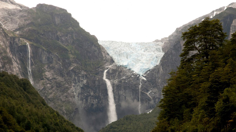Ventisquero Colgante Falls: Situado en el Parque Nacional Queulat en el sur de Chile, las cascadas formadas por la desaparición de los glaciares en la parte superior de las monta?as, tiene una caída de cerca de 549 metros, con una anchura media de 30 m. Afectado por la situación de la continua desaparición de los glaciares, la ruta de esta catarata puede cambiar.