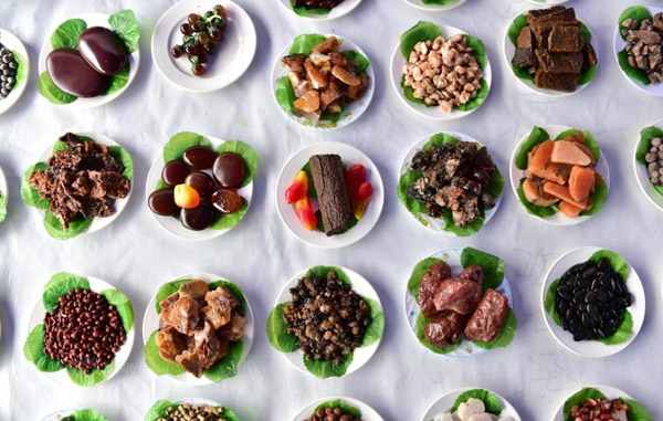 Muestra de un banquete con 108 platos típicos de Mongolia Interior realizados con piedra en el primero día de la Exposición Nacional de Joyería y Gemas de Zhejiang, que comenzó en la ciudad de Yiwu este sábado.