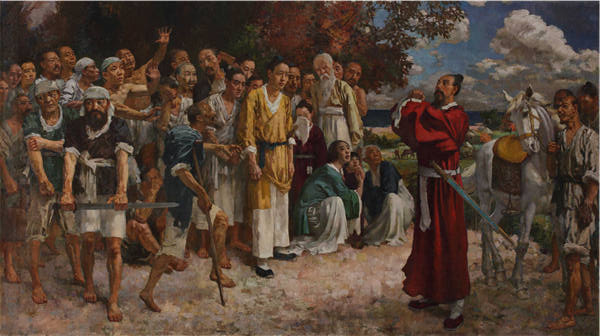 Tian Heng y sus 500 captores, obra de Xu Beihong. [Foto: Chinadaily.com.cn]