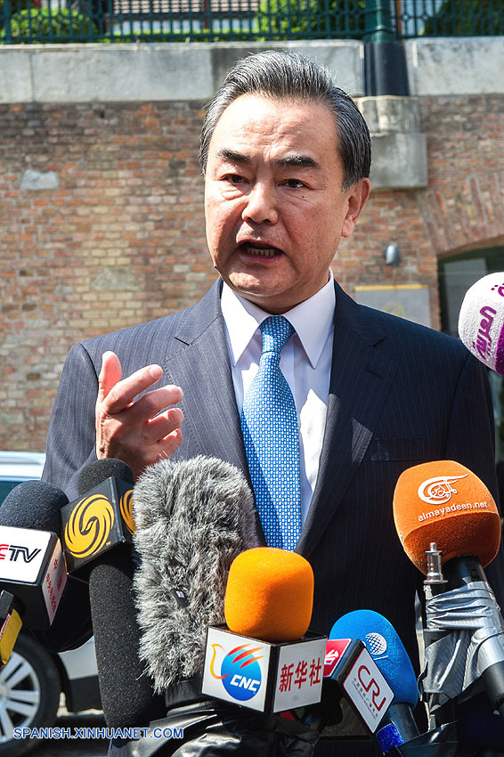 Después de llegar a la capital austriaca, Wang sostuvo reuniones bilaterales en el Palais Coburg con el ministro de Relaciones Exteriores de Irán, Mohammad Javad Zarif; con el secretario de Estado de Estados Unidos, John Kerry; y con el ministro de Relaciones Exteriores de Francia, Laurent Fabius.