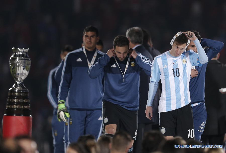 BUENOS AIRES, 6 jul (Xinhua) -- El astro argentino de fútbol, Lionel Messi, expresó hoy su dolor por la derrota de la selección "albiceleste" ante Chile por marcador global 4-1 en la final de la Copa América y agradeció el apoyo de los aficionados.