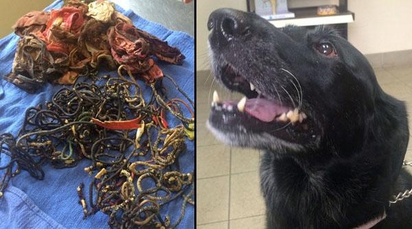 MARS,PENNSYLVANIA,EE.UU.,10/07/2015(El Pueblo en Línea)-Un labrador hambriento tiene unas papilas gustativas inusuales. Un veterinario en Pennsylvania sacó 62 ligas de cabello, ocho calzoncillos y una venda de la panza del perro durante una cirugía exploratoria.